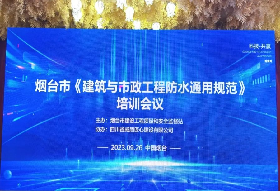 2023年9月26日,為進(jìn)一步做好防水通用規(guī)范的貫徹落實(shí),全面提升市防水工程質(zhì)量,結(jié)合國家和省、市“質(zhì)量月”活動(dòng)部署安排,由煙臺(tái)市建設(shè)工程質(zhì)量和安全監(jiān)督站主辦、四川省威盾匠心建設(shè)有限公司協(xié)辦的《建筑與市政工程防水通用規(guī)范》培訓(xùn)會(huì)議于煙臺(tái)市順利召開。